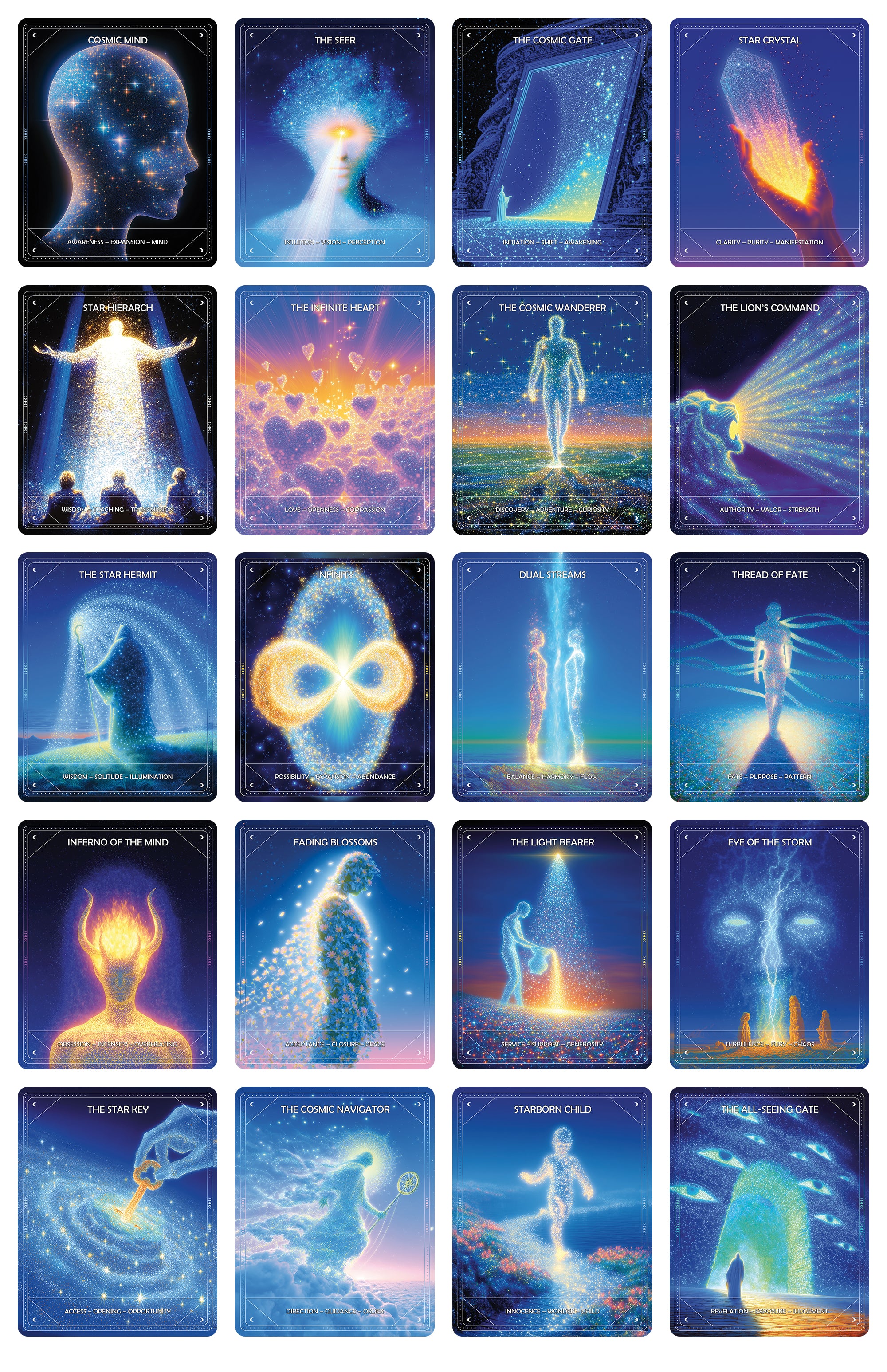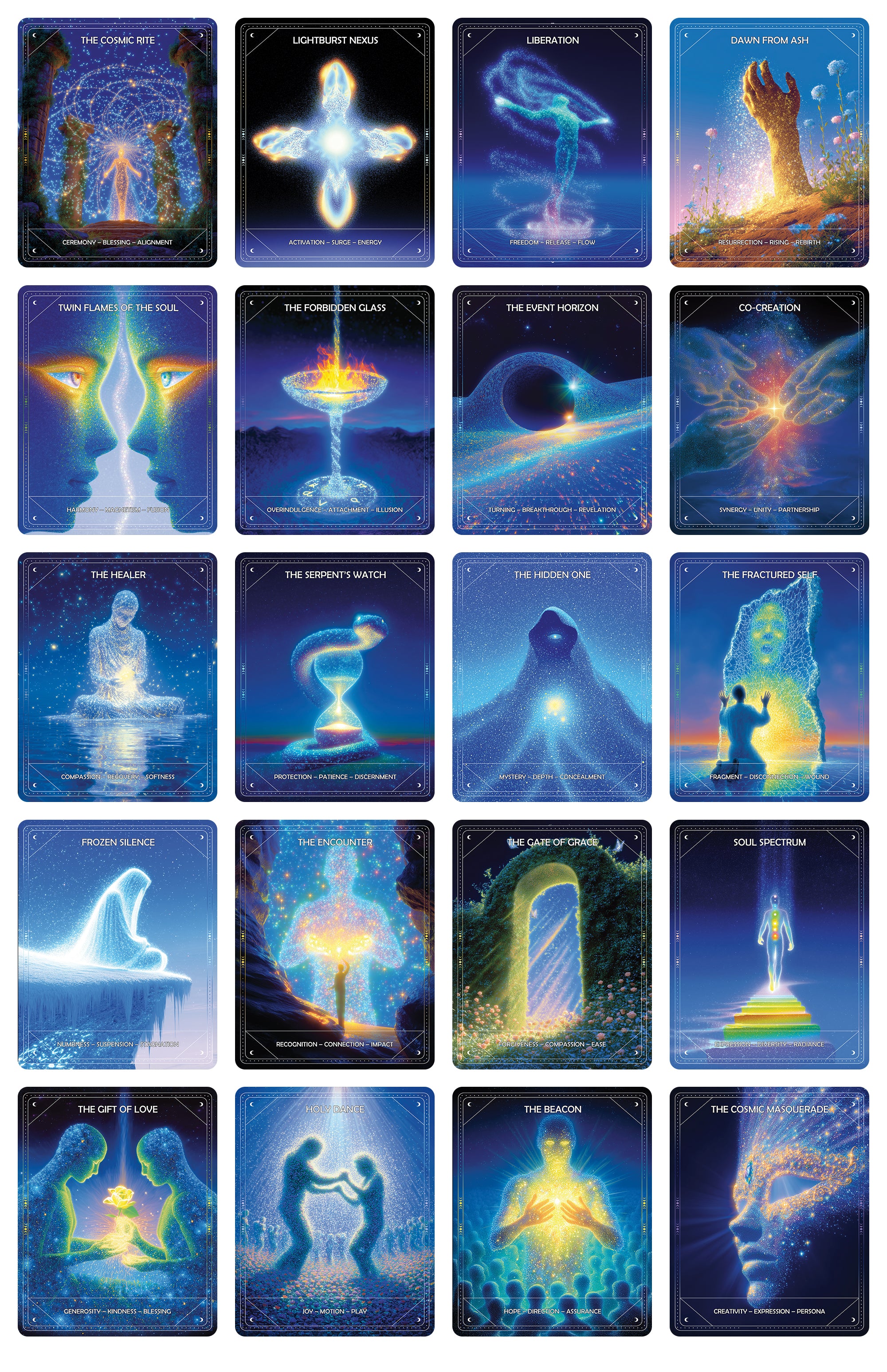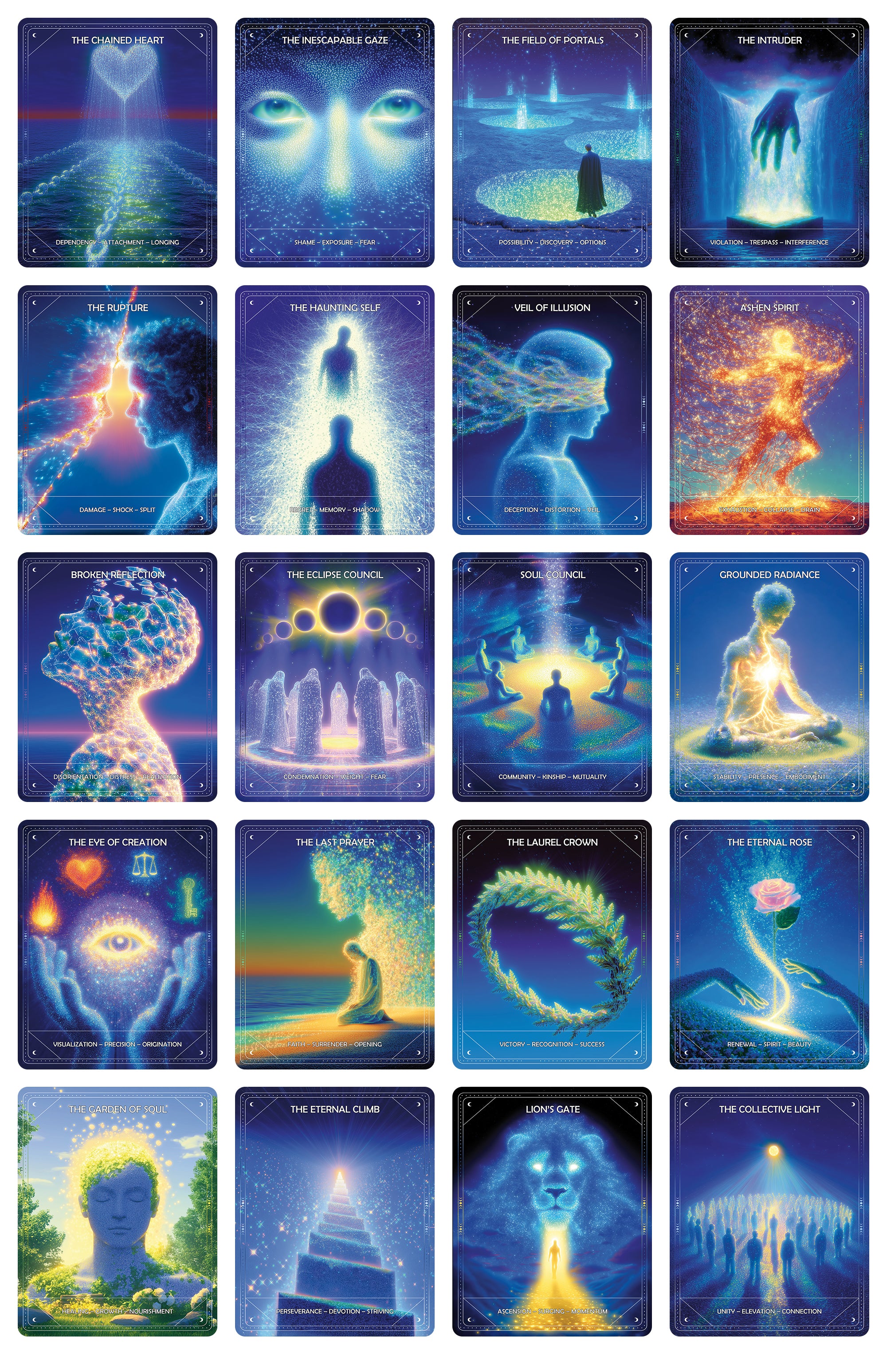 That’s how the Light Beings Oracle Deck (60 cards) was finished: through iteration, selection, and refinement—like editing a book. The images are not random. They’re chosen to function as mirrors: each one pulls a specific mental/emotional thread so you can see your own pattern more clearly.